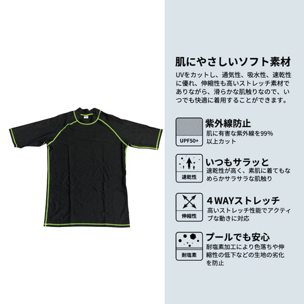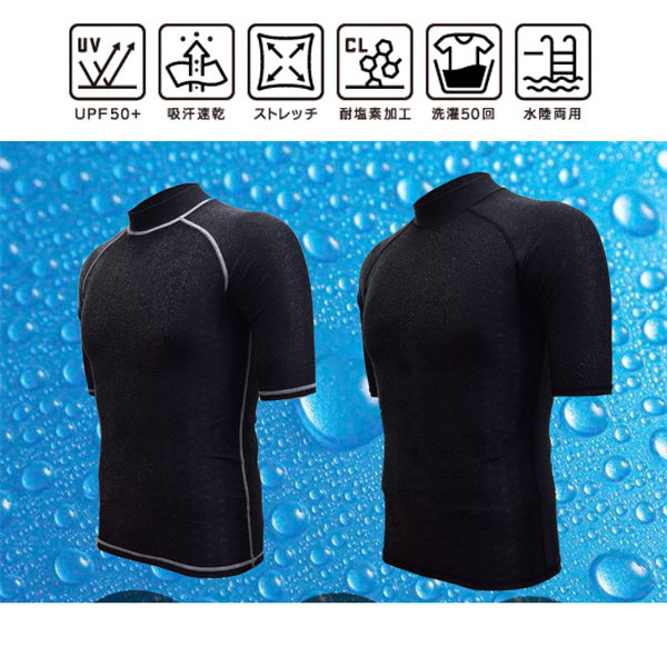 ラッシュガード ユニセックス 半袖Tシャツ 立ち襟タイプ 薄手でしっかりUVカット 涼感素材 体型カバー 日焼け防止 レディース メンズ