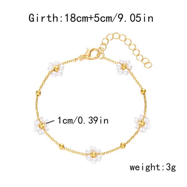 女性のためのフラワーブレスレット イミテーションパール クリスタルビーズ フラワーチェーン ブレスレット バングル ジュエリー エレガント シンプル 友情 ファッション