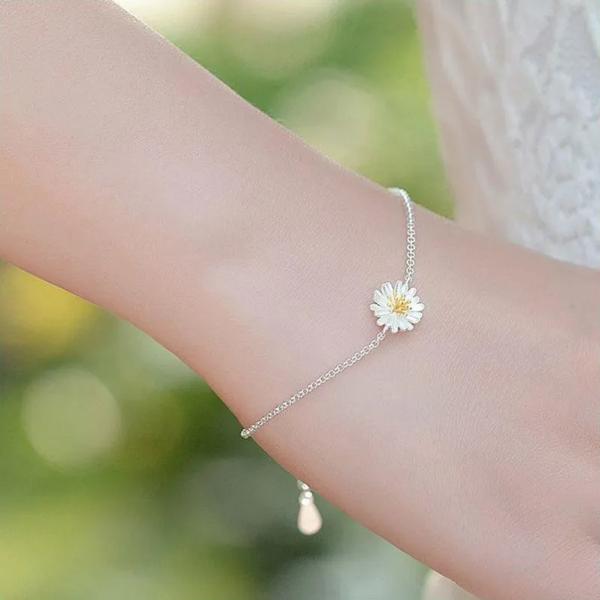 女性のための美しいデイジーとフラワーブレスレット 925シルバーメッキ シンプルなチャーム ギフトジュエリー