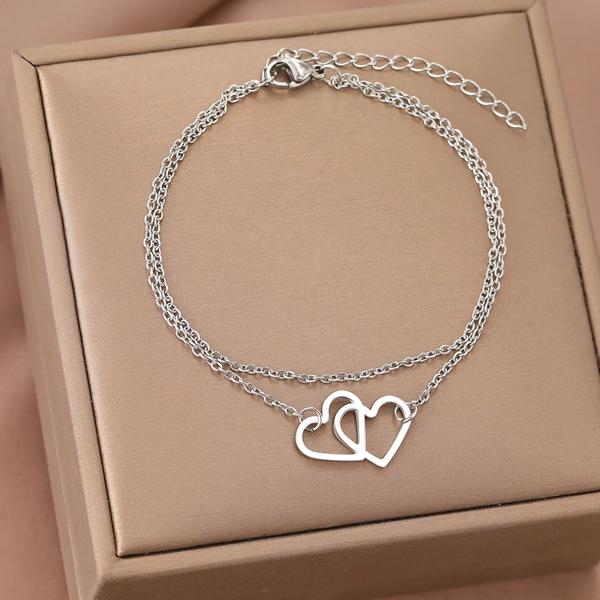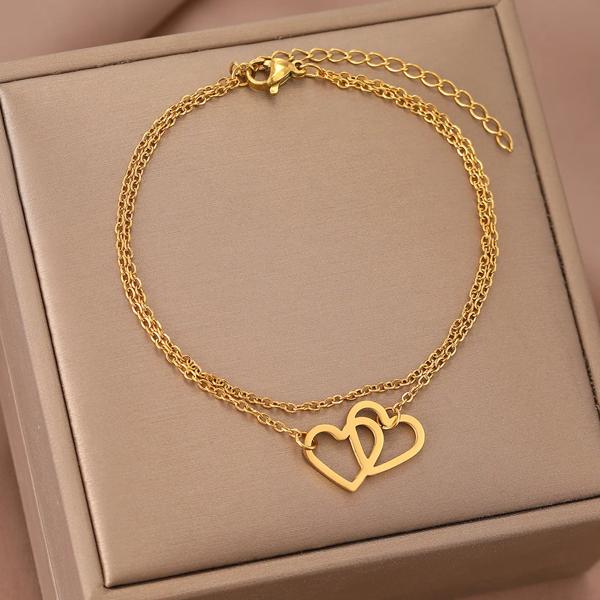 女性のためのステンレス鋼のブレスレット 魅力的な二重中空ハートペンダント 韓国のファッション 女性のための宝石 上質な贈り物