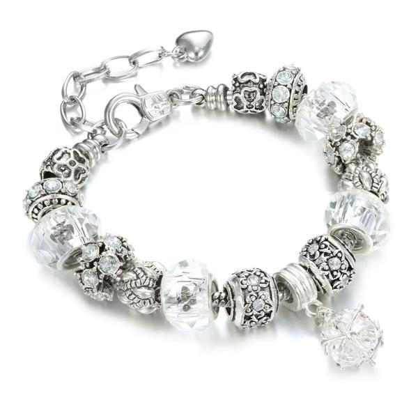 女性のための大きな穴の開いたクリスタルブレスレット ハートチャーム ステンレス鋼のペンダント 韓国のジュエリー 高級ギフト 新しいファッション 2024