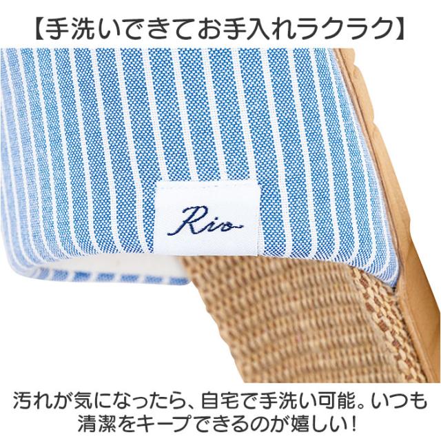 | 素材 | 【ストライプ柄】 [甲材]ポリエステル・レーヨン [中敷]麻・ポリエステル・綿 [底材]EVA 【シャンブレー柄】 [甲材]綿 [中敷]麻・ポリエステル・綿 [底材]EVA |