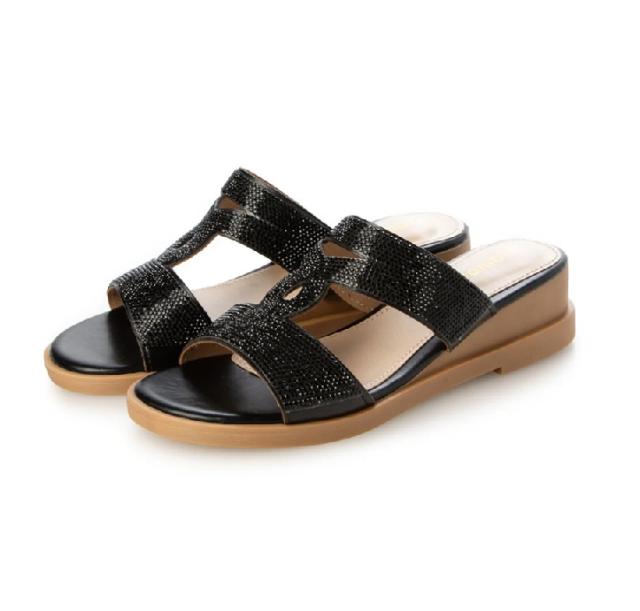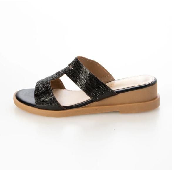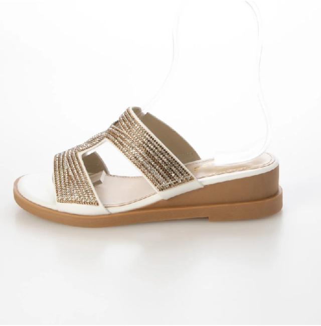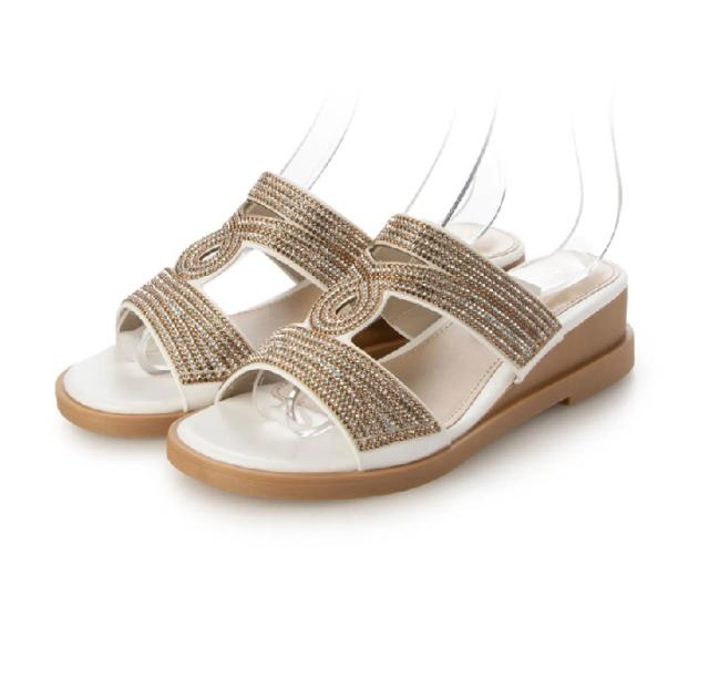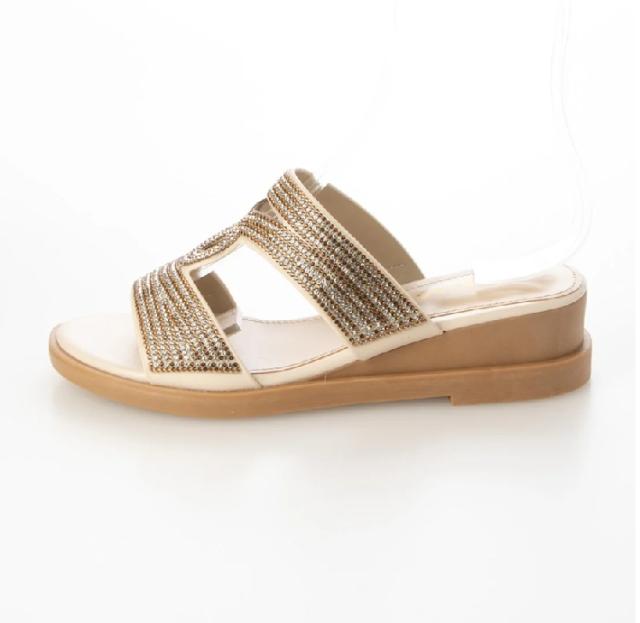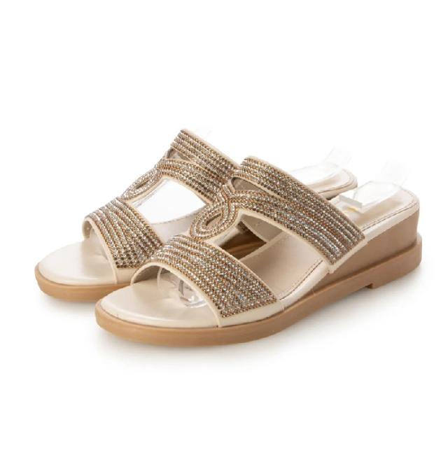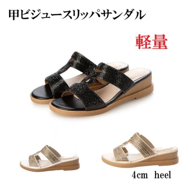 サンダル 甲ビジューサンダル スリッパサンダル ローウエッジ エレガンス カジュアル ビジュー おしゃれ 脚長 スタイルアップ 上品 華やか ミュールタイプ レディースサンダル 歩きやすい 履きやすい 合成皮革