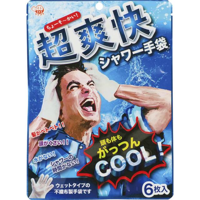 シャワー手袋 超爽快 6枚入 1セット10個60枚 保存期間5年 頭も体も拭ける 水不要 冷却感長持ち 無香料 日本製 なでフク 災害 震災 備え 防災用品 送料無料