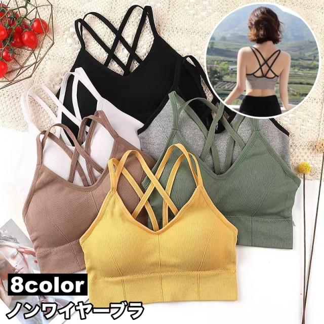 ノンワイヤーブラ ブラジャー レディース 女性 下着 インナー カップ入り パッド入り ダブルストラップ バッククロス 無地 シ