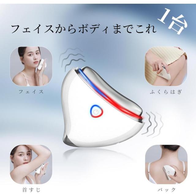 【1台4役】革新的な技術を採用した4つの機能を組合わせることで、リフトアップでむくみ悩みが解消する効果も。「温熱機能」高周波によって肌の内側からじんわりと温め、均一温度を保持できます、約39°?45° この温度で、どんどん気持ちよく出来ますので。「振動機能」従来のカッサプレートより振動機能が追加されていて、顔用だけではなく、くび、腕、足など体のどこでもご利用いただけます。「EMS微電流」が肌の筋膜群層をターゲットに、微妙な筋肉収縮によって筋肉のトーンとリフトを改善します。4つの異なるモードは、多くの人の異なる肌タイプと異なるスキンケアニーズを満たすことができます。ユーザーは自分の肌の状態とニーズに応じて適切なモードを選択することができます。