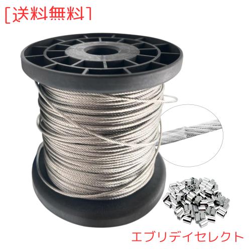 ワイヤー ステンレスワイヤー 径3.0mm 構成7×7 ステンレスロープ ビニール被覆 アルミスリーブ付き 多用途 防錆性 地震対策 牽引 ガーデ