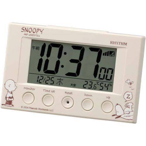 RHYTHM(リズム) 8RZ166MS38 ライト ベージュ スヌーピー デジタル 電波 目覚まし時計 電子音 アラーム スヌーズ 付 温湿度計 カレンダー