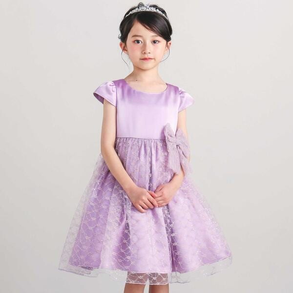 【パニエ付】サテン×チュールレースドレス(95~150cm)