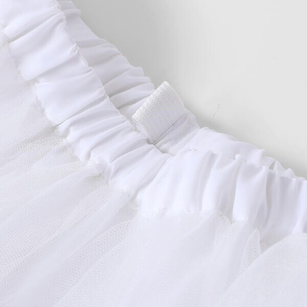 ウエストにはスカート部分のチュールレースと同じ生地の大きなリボンモチーフ付き。