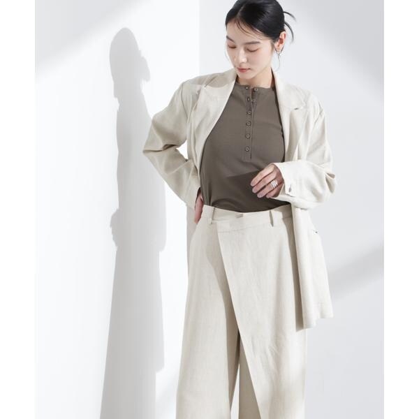 ・6695127310 リネン混ラップパンツ(セットアップ可)