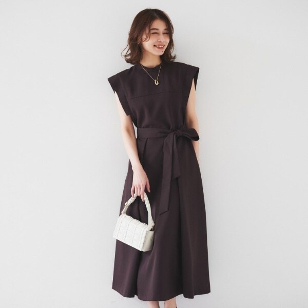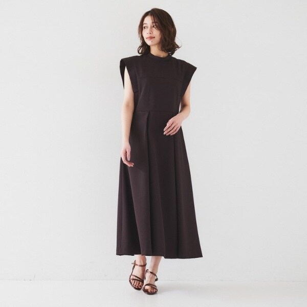肩の部分があらわになり過ぎない、少し隠れるノースリーブデザイン。