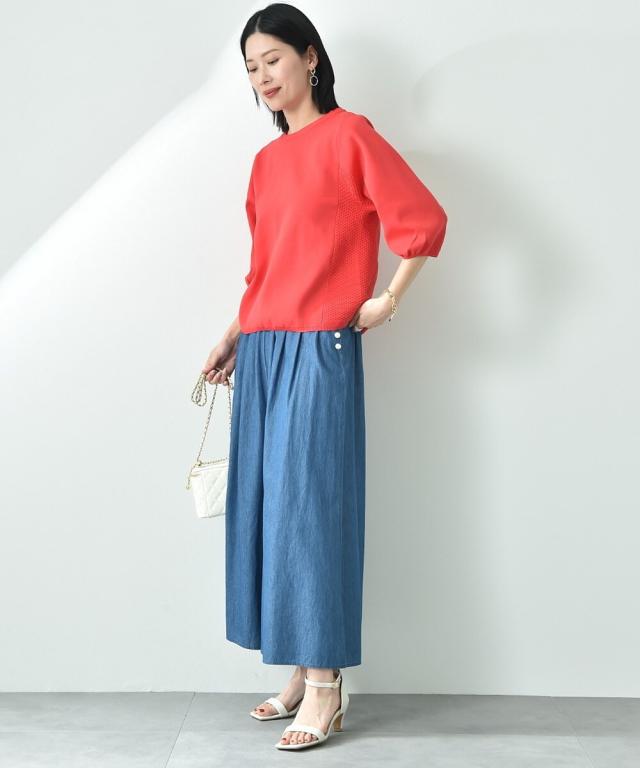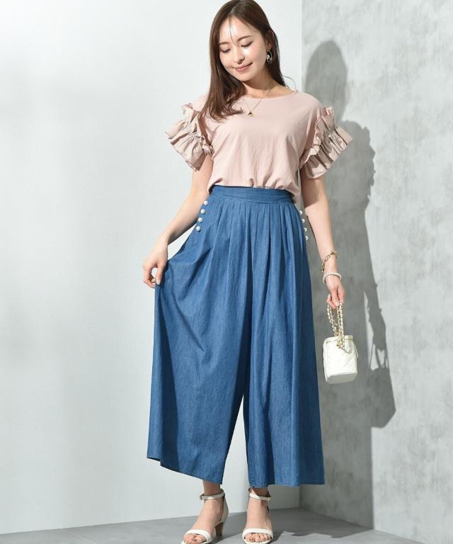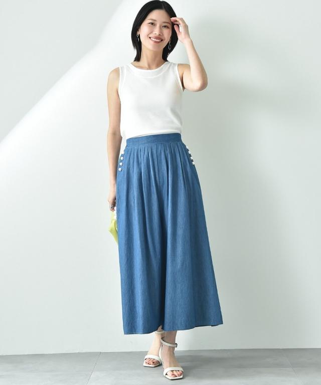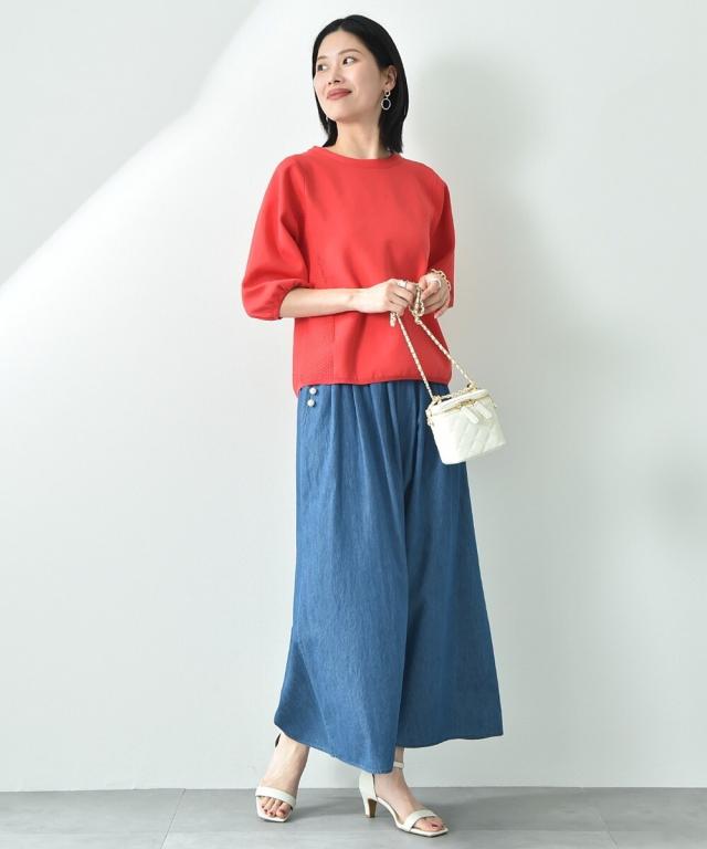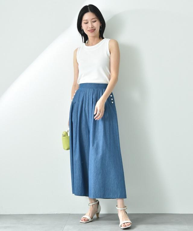Tシャツやデザインカットソーでデイリーカジュアルに、サマーニットやブラウスとスタイリングするとより女性らしさがアップします。足元はス二ーカーはもちろん、フラットサンダルでデイリーにも◎暑い日でも快適でアクティブに着回せるスカンツです。