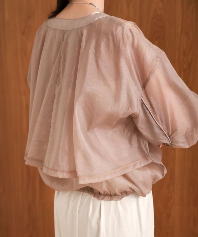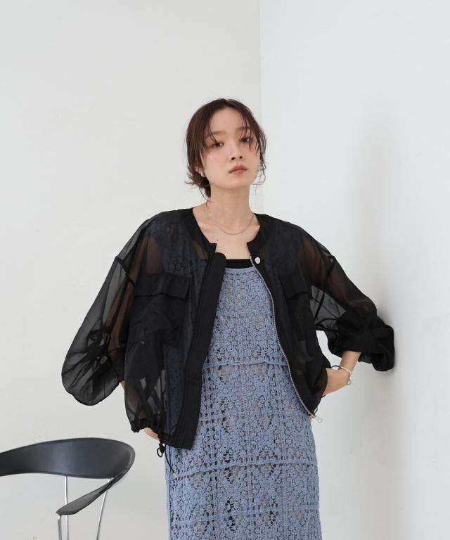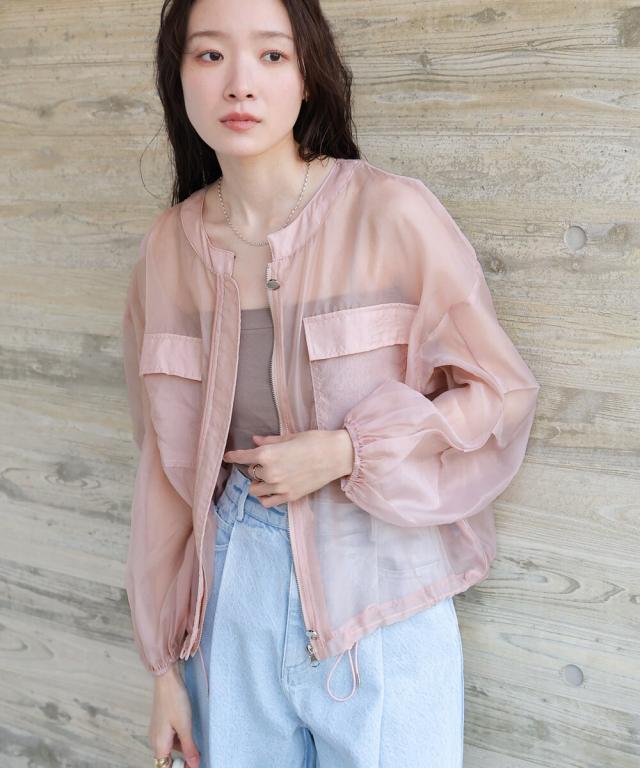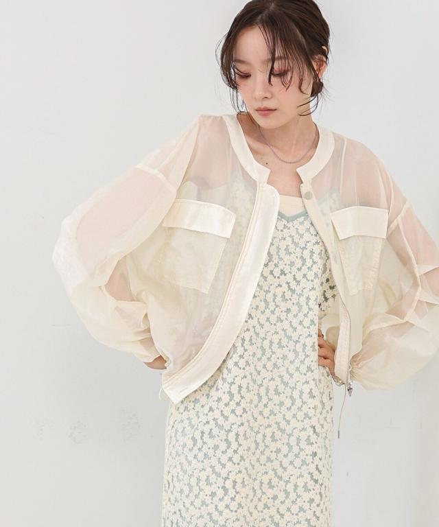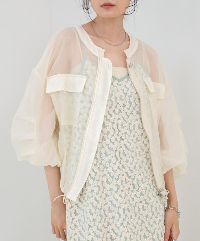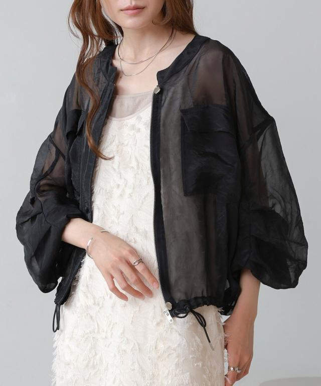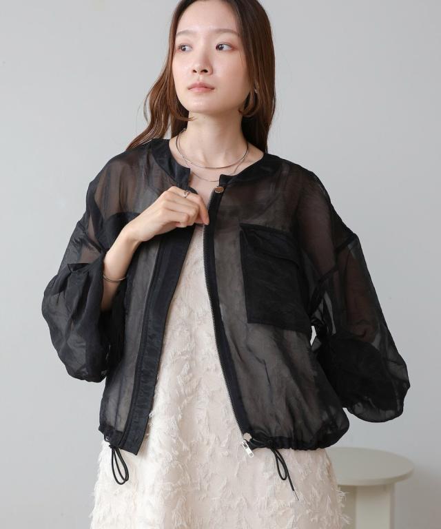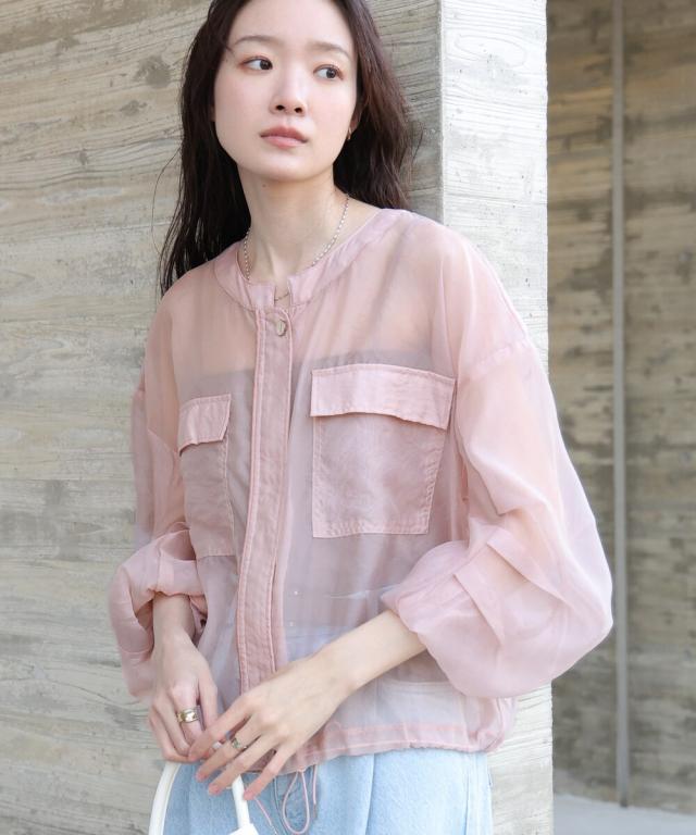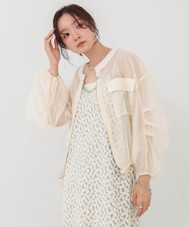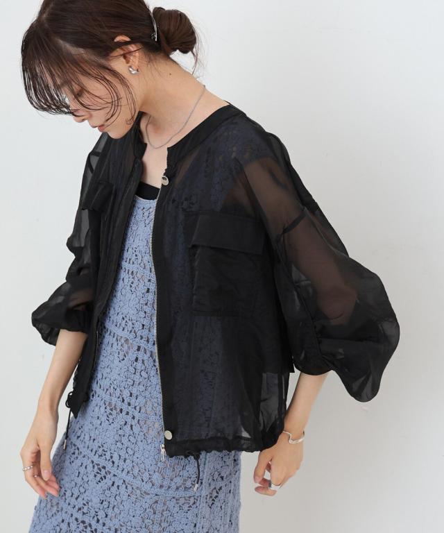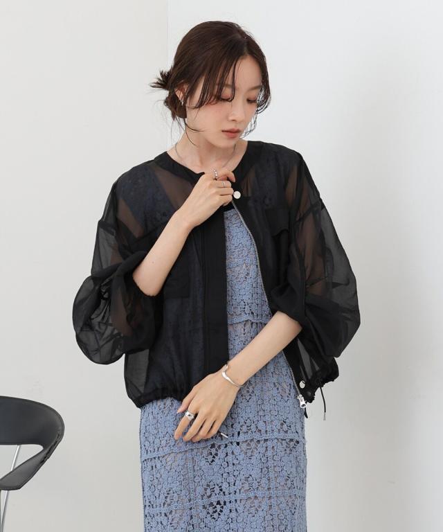 1枚羽織るだけでこなれ感を演出するシアーブルゾンの登場です。透明感のある綺麗なペールトーンの3色展開でシーズンムードが高まります。裾にぐるっと入った丸ゴムは好きな位置で結んで絞り具合を変えて頂ける仕様。袖口を捲り上げて手首を見せれば一気に抜け感のあるスタイルになります。ふらしのバックディティールで360度どこから見ても抜かりないデザインも好印象です。さり気ないパイピングもアクセントになり、ふわっとエアリー感のある生地が初夏までしっかりと活躍してくれるアイテムです。