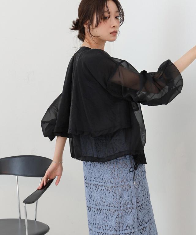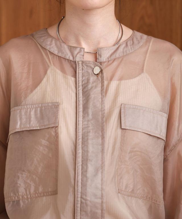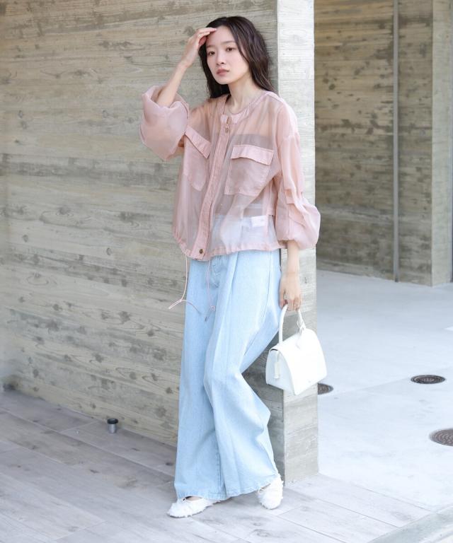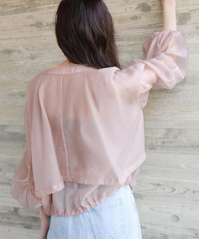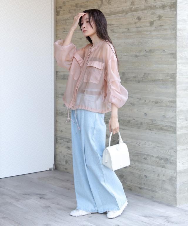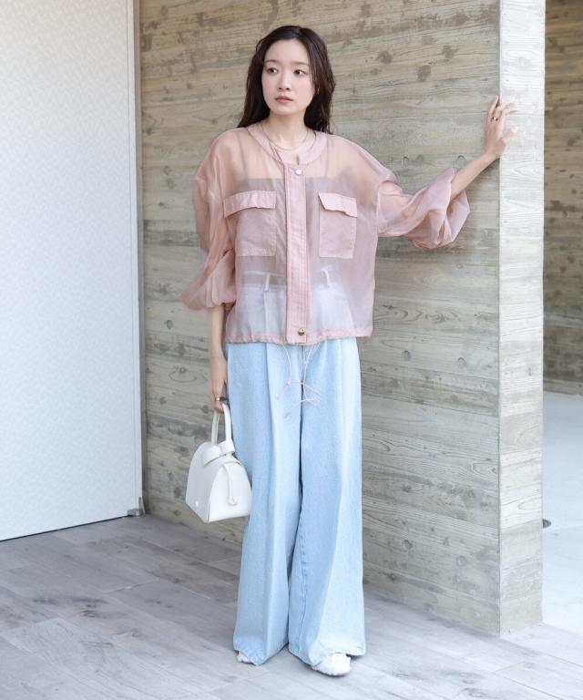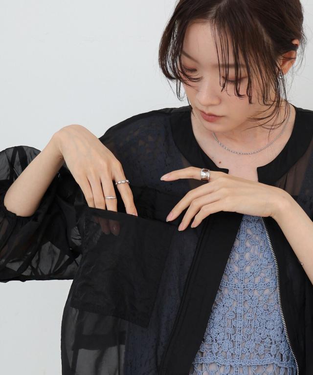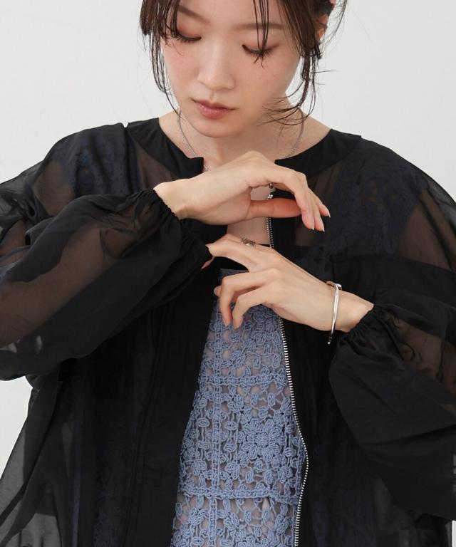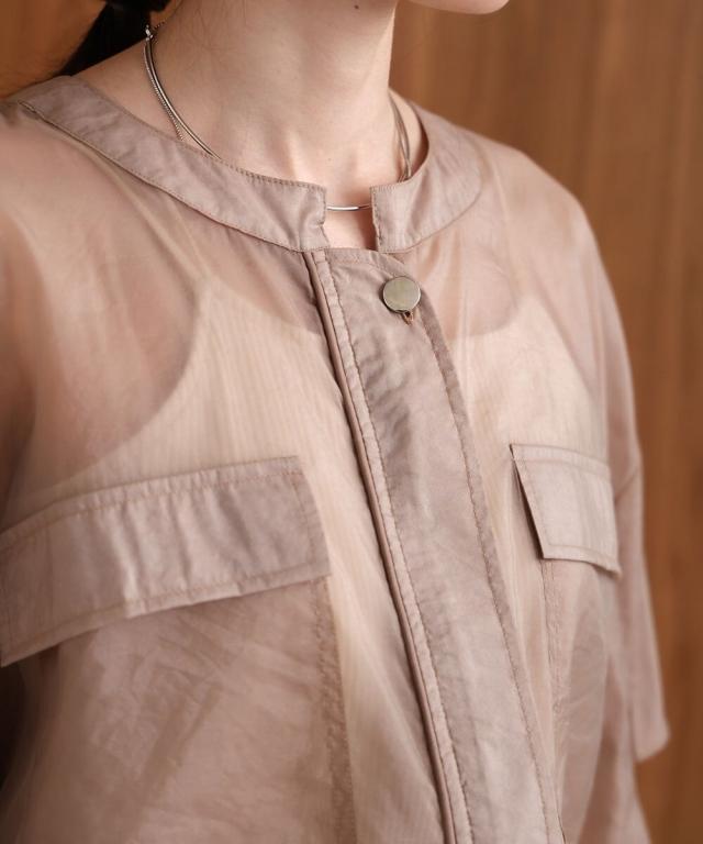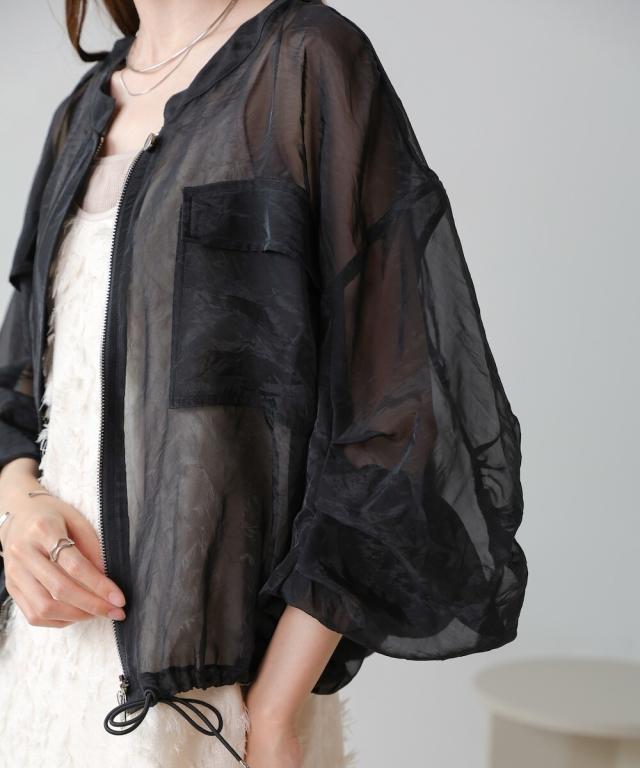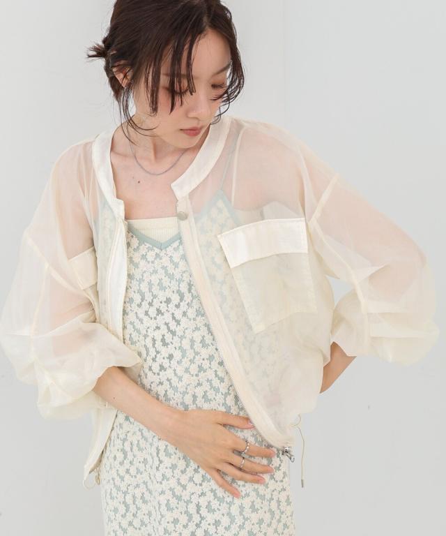 1枚羽織るだけでこなれ感を演出するシアーブルゾンの登場です。透明感のある綺麗なペールトーンの3色展開でシーズンムードが高まります。裾にぐるっと入った丸ゴムは好きな位置で結んで絞り具合を変えて頂ける仕様。袖口を捲り上げて手首を見せれば一気に抜け感のあるスタイルになります。ふらしのバックディティールで360度どこから見ても抜かりないデザインも好印象です。さり気ないパイピングもアクセントになり、ふわっとエアリー感のある生地が初夏までしっかりと活躍してくれるアイテムです。