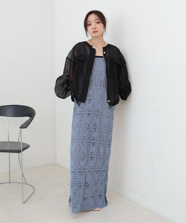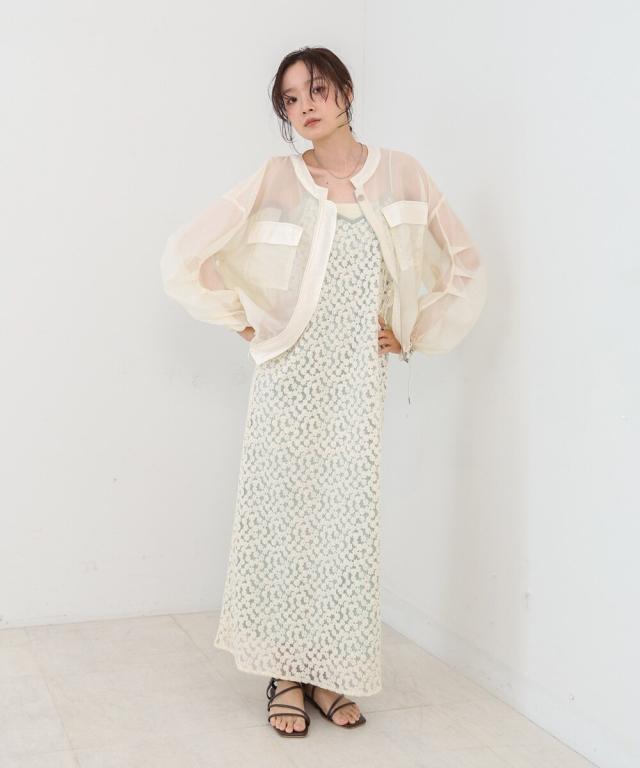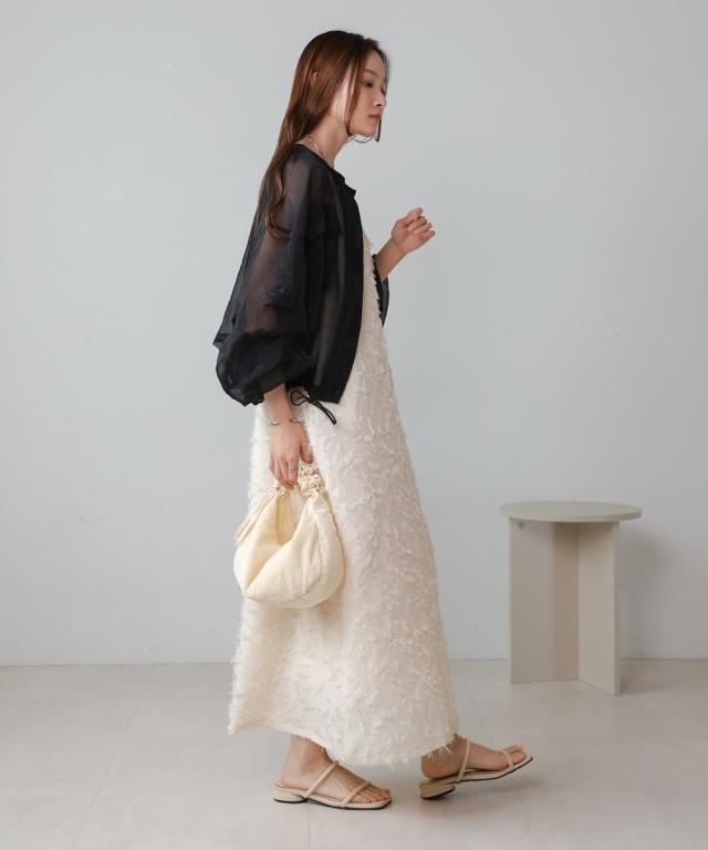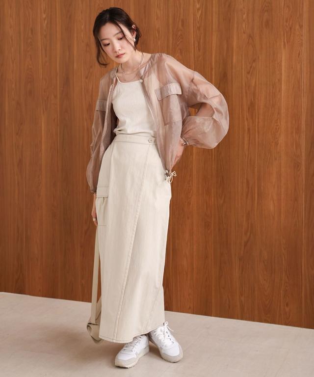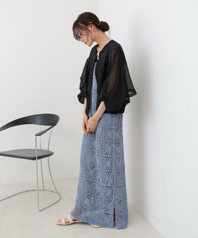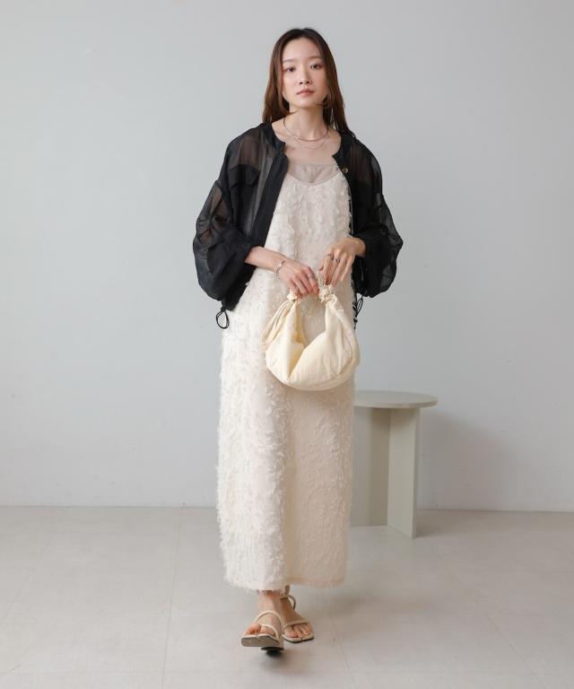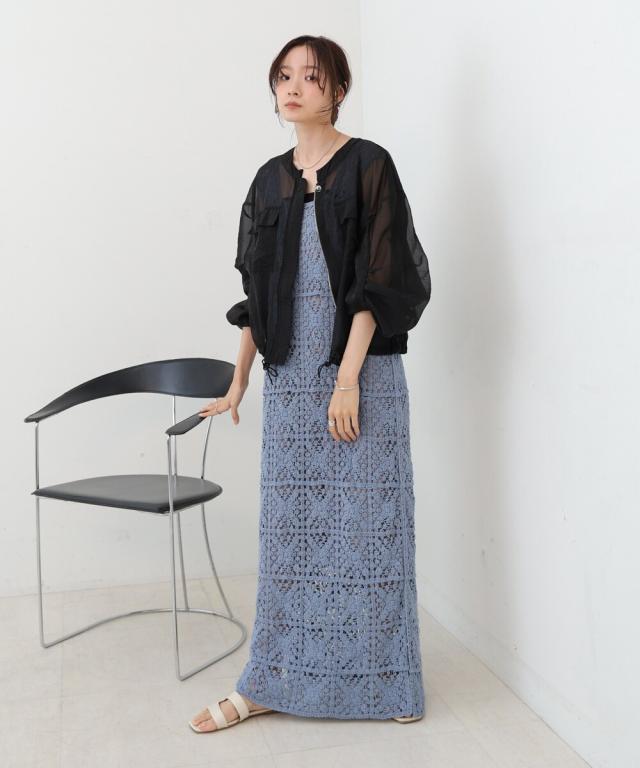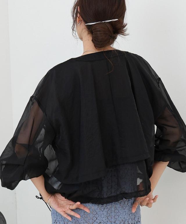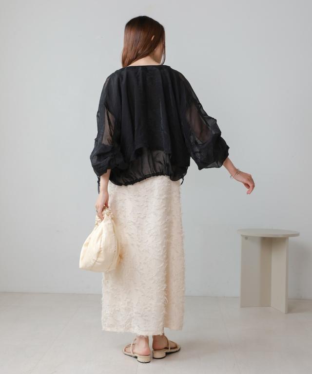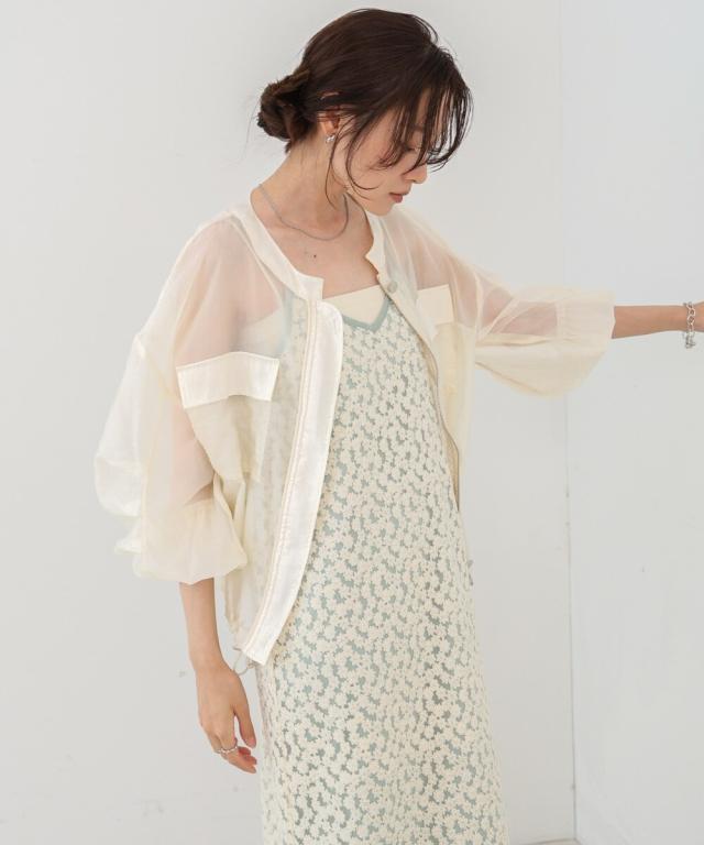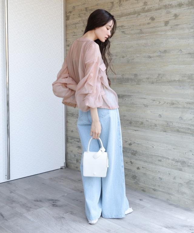1枚羽織るだけでこなれ感を演出するシアーブルゾンの登場です。透明感のある綺麗なペールトーンの3色展開でシーズンムードが高まります。裾にぐるっと入った丸ゴムは好きな位置で結んで絞り具合を変えて頂ける仕様。袖口を捲り上げて手首を見せれば一気に抜け感のあるスタイルになります。ふらしのバックディティールで360度どこから見ても抜かりないデザインも好印象です。さり気ないパイピングもアクセントになり、ふわっとエアリー感のある生地が初夏までしっかりと活躍してくれるアイテムです。