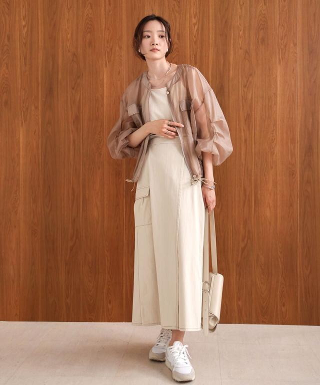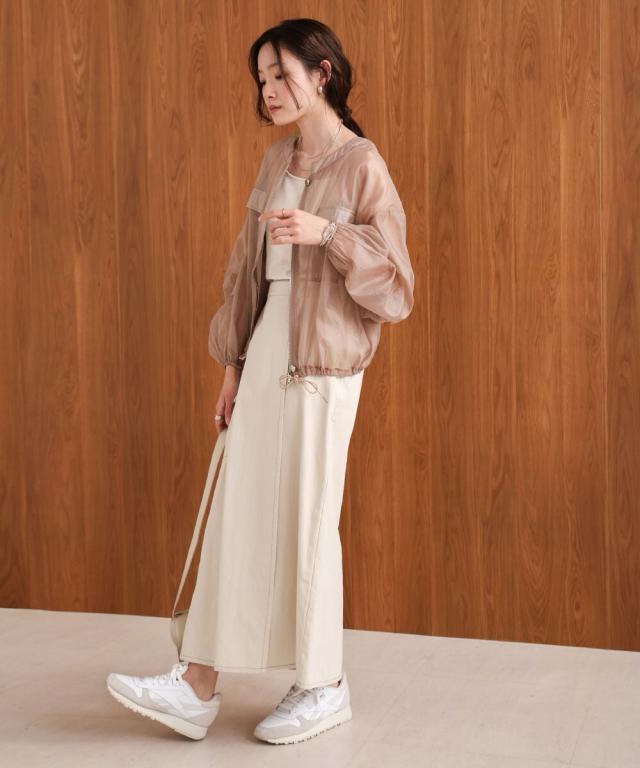 春から初夏にかけてのコーディネートがアップデートする万能ブルゾン!キャミワンピにさらっと羽織ったり、スラックスでもジーンズでもしっくり馴染むデザインです。スカートの場合は、ナロースカートなどすっきりめのシルエットと合わせると綺麗なバランスで着こなせます。