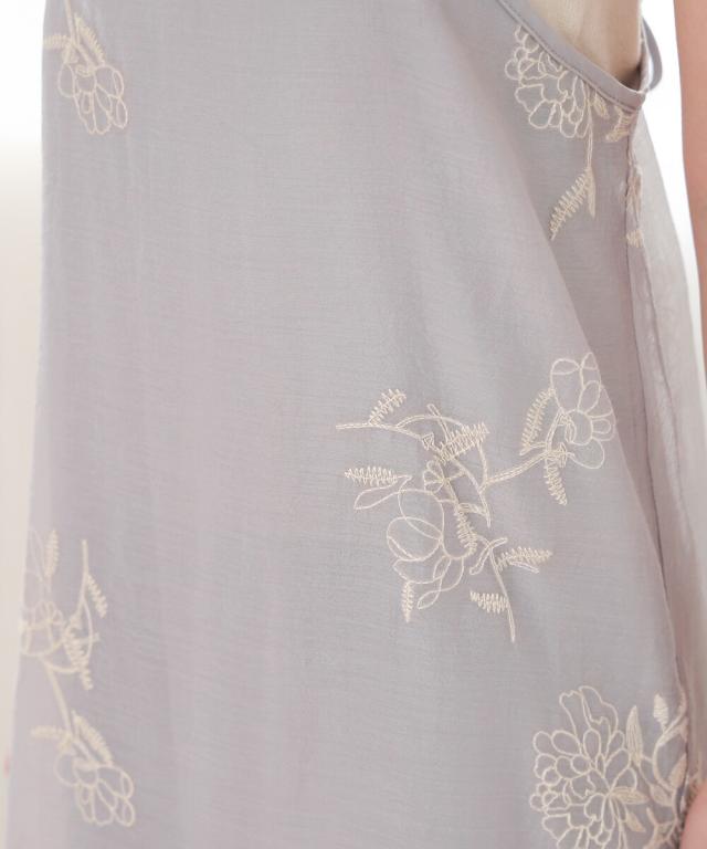 全体的に施された花刺繍が豪華なキャミソールワンピースです。バックデザインも華奢な印象を与える紐リボンのレースアップで360度どこから見ても抜かりないデザイン。上品ながらも裾スリットで足さばきもよく、インナー次第で様々なテイストを楽しめる1着です。アジャスター付きで着丈の調整も可能ですが、小柄さんにも嬉しいSサイズもご用意いたしました。
