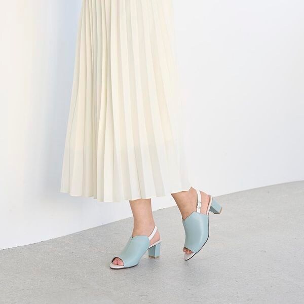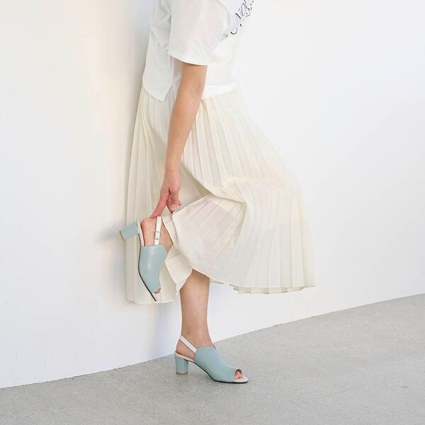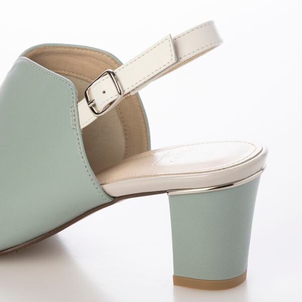 ヒール部分にあしらったメタリック金具が程用よいアクセントに。