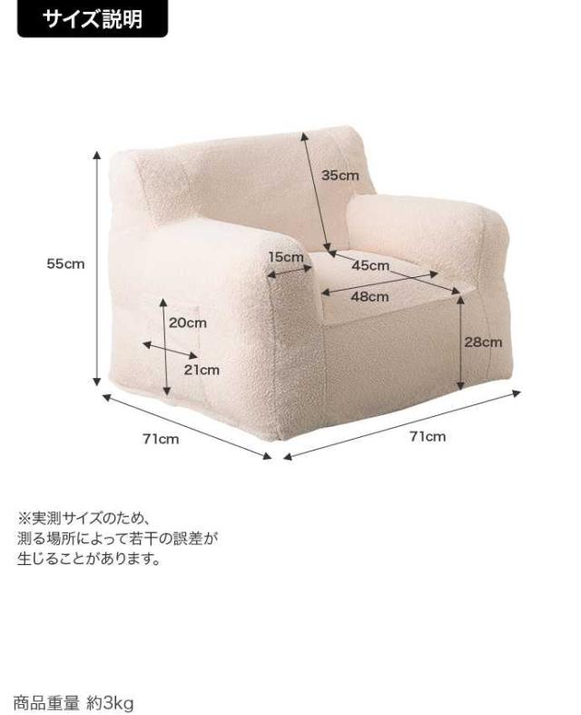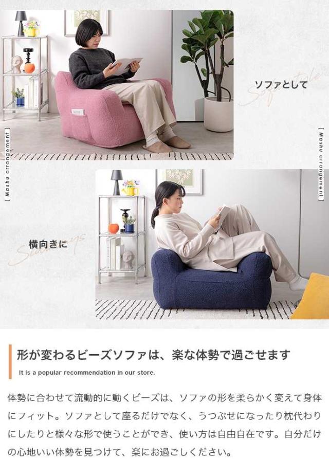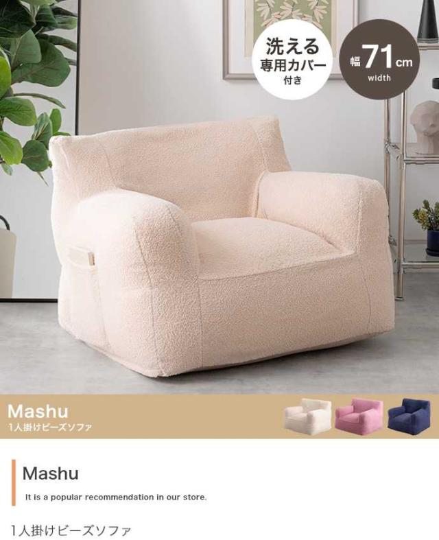 ソファ 1人掛け 肘付き 布張り ビーズクッション カバーリング 洗濯可 1人掛け ビーズソファ 幅71cm Mashu