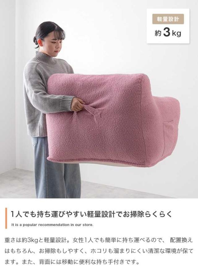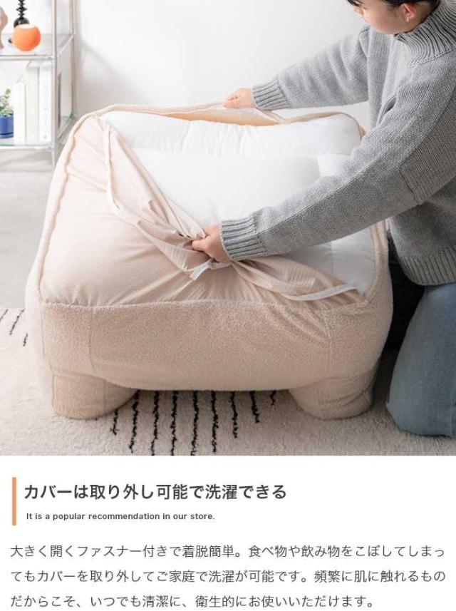 思わず触れたくなるふんわりもこもこ生地のカバーは取り外し可能で洗濯ができ、清潔にお使いいただけます。