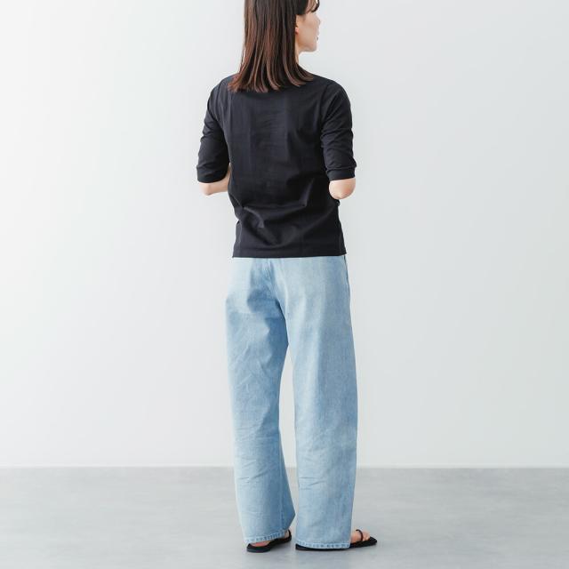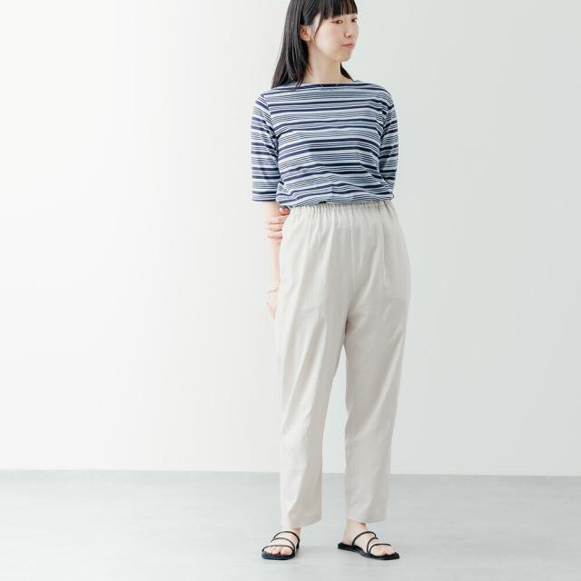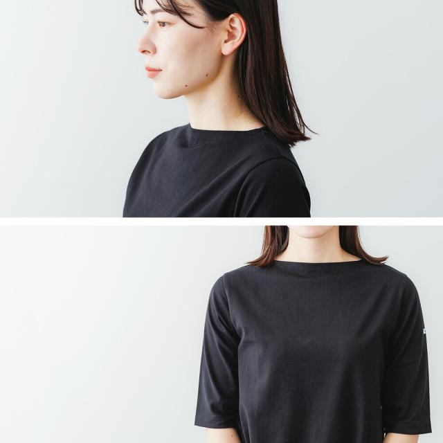 そのままさらっと着ても、タックインしても雰囲気よく着こなせます。 きちんと見えが叶う、上品ボートネック。