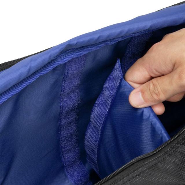 ◯2つの仕切りを搭載し、シューズもワンアクションで出し入れできる。