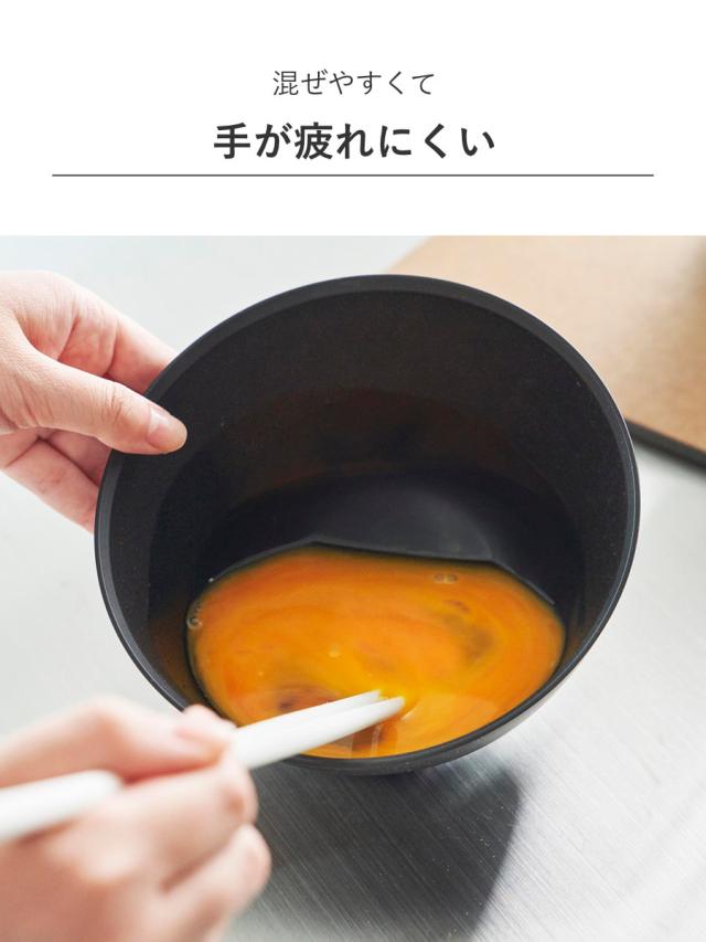 斜めに傾けて軽く手で持つだけで安定して混ぜやすい