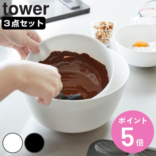 山崎実業 tower 傾けて混ぜやすい調理ボウル タワー 3点セット 電子レンジ対応 ( 4903208013918 タワーシリーズ 調理ボウル 電子レンジ 食洗機対応 調理 ボウル 混ぜやすい ボール 耐熱ボウル レンジ対応 3点 )