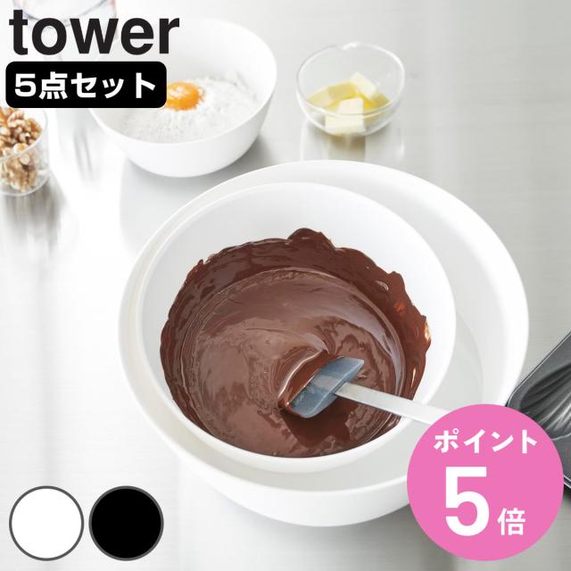 山崎実業 tower 傾けて混ぜやすい調理ボウル タワー 5点セット 電子レンジ対応 ( 4903208013932 タワーシリーズ 調理ボウル 電子レンジ 調理 ボウル フタ付き フタ 蓋 食洗機対応 レンジ対応 5点 )