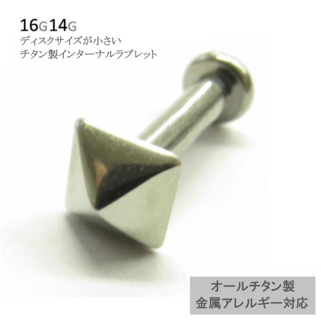 チタン ピアス スタッズインターナルラブレット 16G 14G シルバー 金属アレルギー対応 ボディピアス 軟骨ピアス トラガス ヘリックス 口ピアス ラブレット 鋲型 スパイクピアス ピラミッド型 四角推 シンプル つけっぱなし