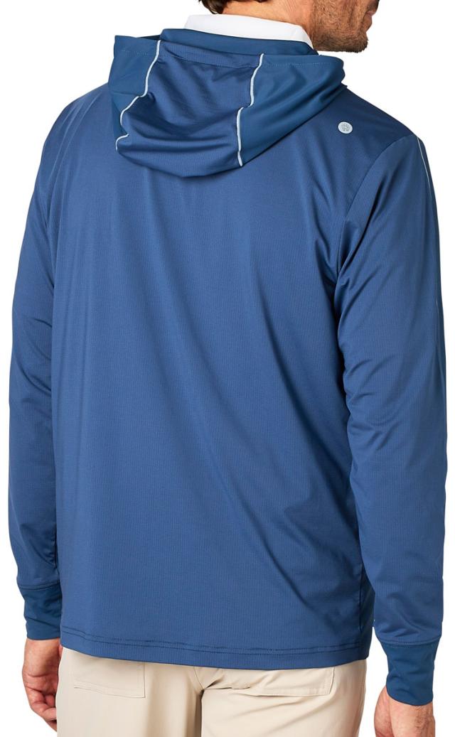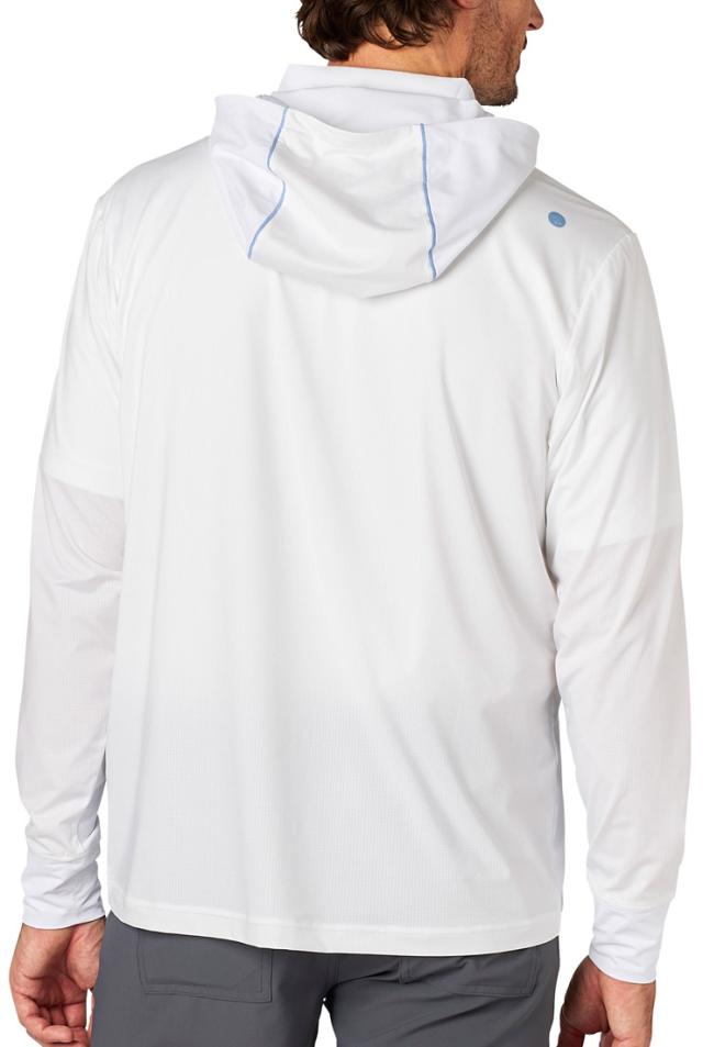 ストレッチ性と通気性に優れた素材を組み合わせたハイブリッド仕様の長袖フーディー。軽量かつ快適な着心地を提供し、肌寒い時に羽織る一枚として重宝します。