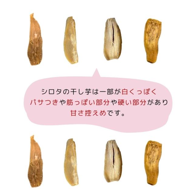 また、シロタを含む干し芋は、形やサイズにばらつきがあるため、訳あり品となります。