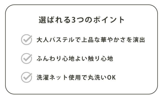 程よい厚みがあり、ふわふわで柔らかな手触りです。足元をやさしく包み込み、毎日心地よくお使いいただけます。