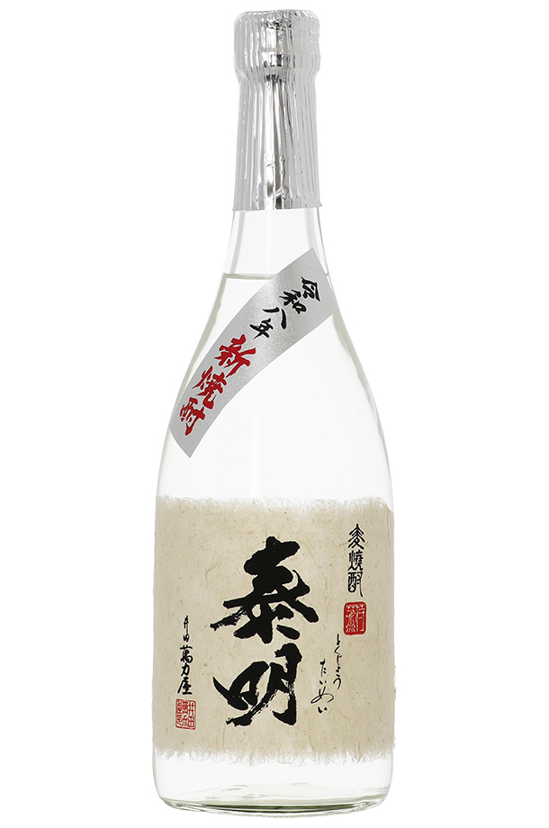 | ふくよかな旨みの後に広がる引き締まった後口が特徴です。泰明本来の甘味とコクを、しっかりと残した贅沢な焼酎です。 麦焼酎といえばいつの間にか無味無臭が主流となってしまいましたが、この「特蒸泰明」は麦焼酎の本来の古典的な味と香りが取り戻された王道を行く焼酎と言えるでしょう。 香りを楽しんでいただけるよう、お湯割りやロックがお勧めです。 |