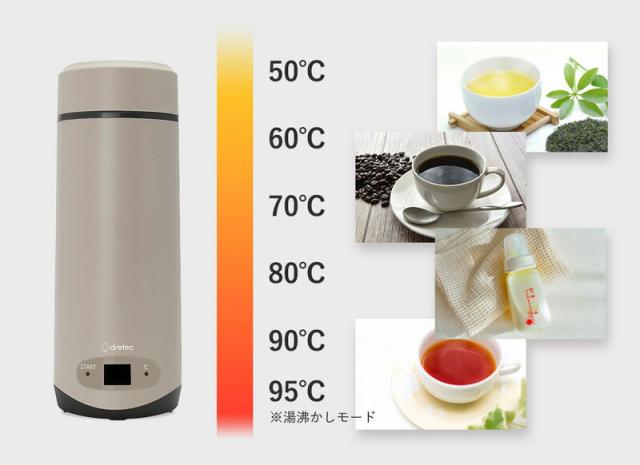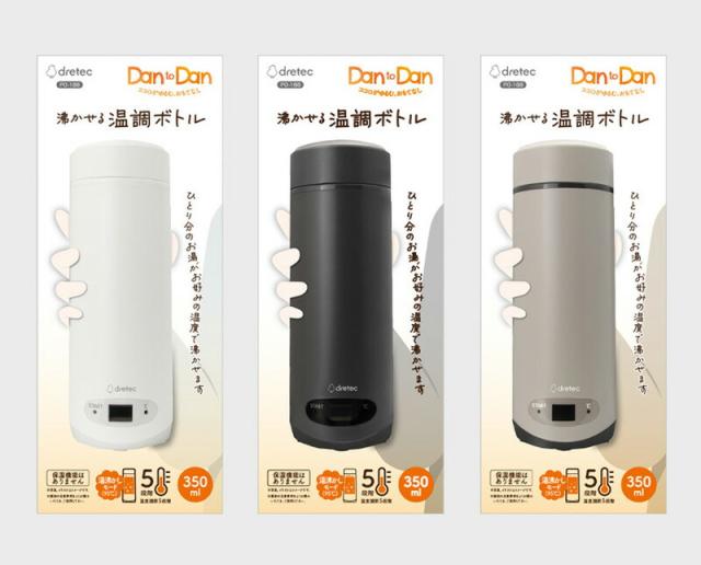 dretec 沸かせる温調ボトル PO-166 ドリテック お出かけ先でもひとり分のお湯をお好みの温度で沸かせる 350ml 5段階の温度調節モード 200mlから沸かせる 湯沸しボトル ![]() 温かさ、ひとり占め