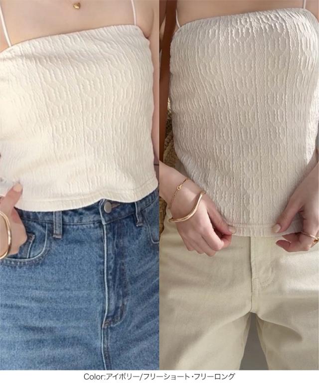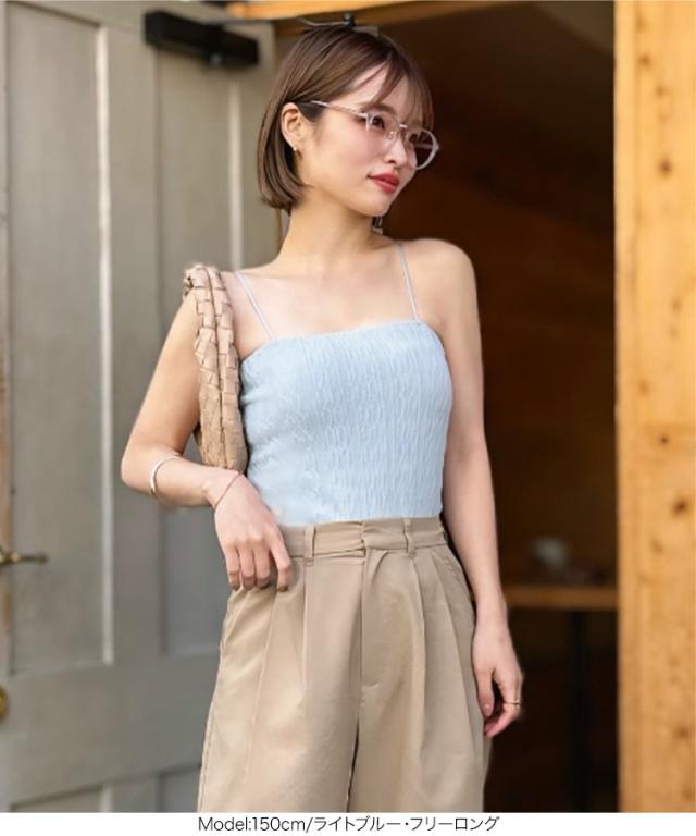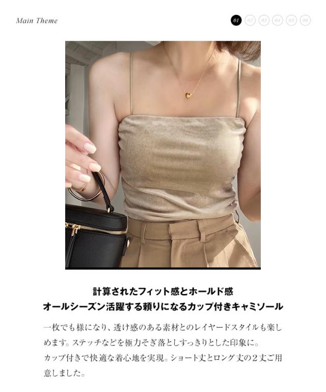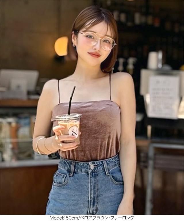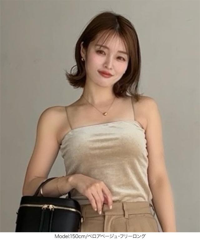 大人気インフルエンサー【yuri.さんコラボ】選べる2丈カップ付きキャミソール。1枚でもサマになり、シアー素材やニットとのレイヤードも楽しめます。肩紐が華奢なので、首元が開いたトップスや真夏のワンピースとも好相性でオールシーズン大活躍間違いなしの1着です。【素材・サイズ感】着脱しやすいカットソーのふくれジャガードは立体感があり優しくフィットします。上品な光沢のあるベロア素材はエレガントな印象に。ショートは短すぎず、トレンド感のあるヘルシーな肌見せが可能。ロングはボトムにインしやすい丈感でボトムを選ばない万能アイテムです。※この商品は、商品管理上の観点から返品や交換をお受けできません。※キャンセル/変更不可※※お届けまでの日程について