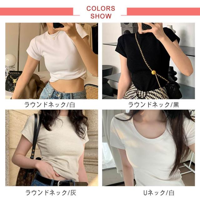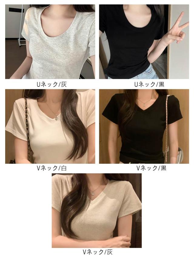 半袖tシャツ vネック ラウンドネック Uネック 半袖 レディース 半袖Tシャツ ストレッチ トップス 無地 シンプル 伸縮性 プルオーバー tシャツ S M L XL おしゃれ カジュアル ミディアム丈 重ね着 インナー 送料無料