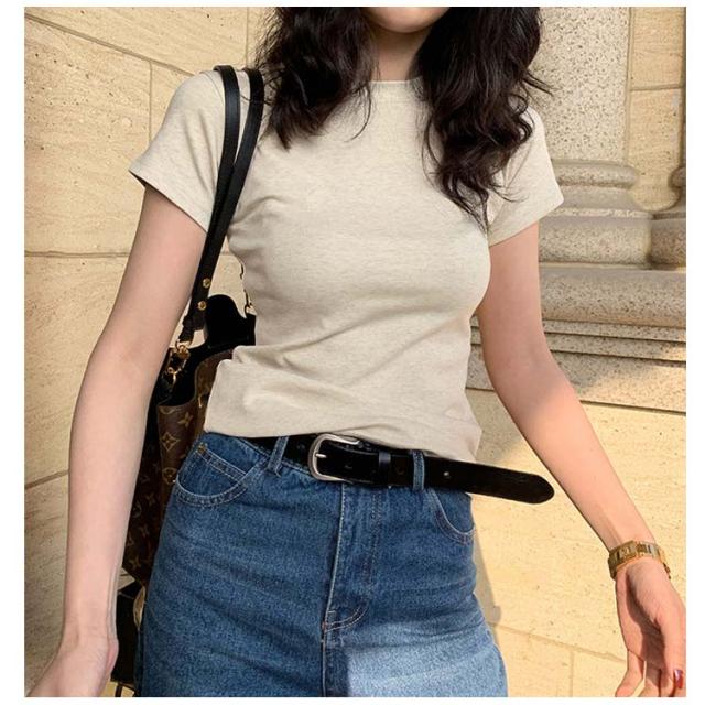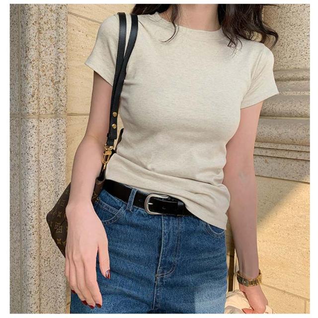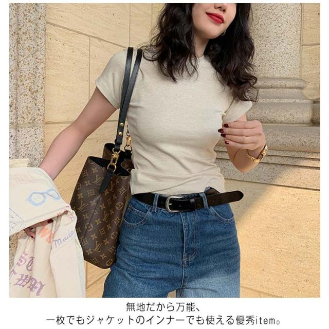 | 暑い時期もサラッとした着心地で快適な着用感を提供。 首回りがネックレスが映えやすいし、お顔周りがスッキリして見えます♪ 二の腕が気にならない程よい袖丈になっていて、 定番デザインなので幅広いコーディネートと相性バツグンです。 選べるネックデザインも魅力。 無地だから万能、一枚でもジャケットのインナーでも使える優秀item。 | |