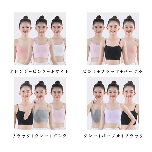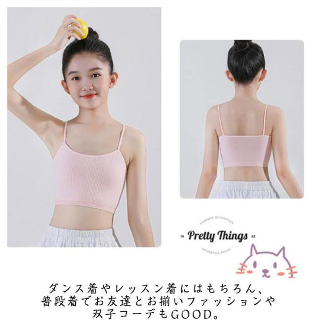 3枚セット キャミソール キッズ 女の子 子供用 タンクトップ かわいい 女児 3枚組 下着 可愛い ジュニア インナー 肌着 アンダーウェア 小学生 中学生 ダンス衣装 ヒップホップ 重ね着