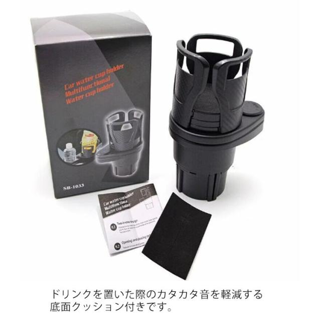 | ドリンクホルダー 車 2本 カップホルダー 上部ホルダーは幅の広さが調整可能!最大15cmまで広がります。コーヒーペットボトルから、紙パック、カップ麺までしっかりと固定されます マルチホルダー側が回転することでドリンク1本分の純正ドリンクホルダーを2本分にできます。 車のドリンクホルダーに置くだけで簡単に設置することができます。 ドリンクを置いた際のカタカタ音を軽減する底面クッション付きです。 | |