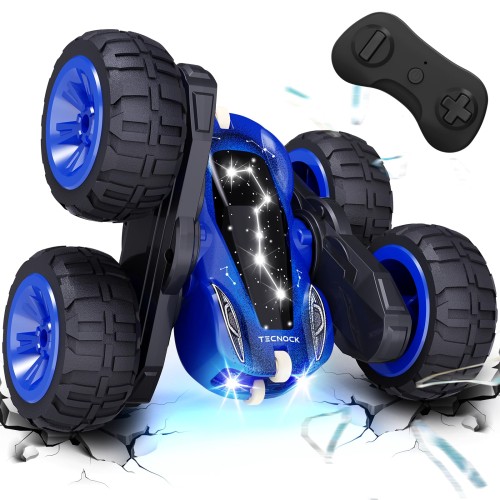 Tecnock ラジコンカー 子供向け USB Type-C直接充電式 スタントカー 360度回転 両面走行 ラジコン オフロード 4WD四輪駆動 RCカー 2.4GHz おもちゃ 車 男の子 誕生日 贈り物 大人向け プレゼント (ブルー)