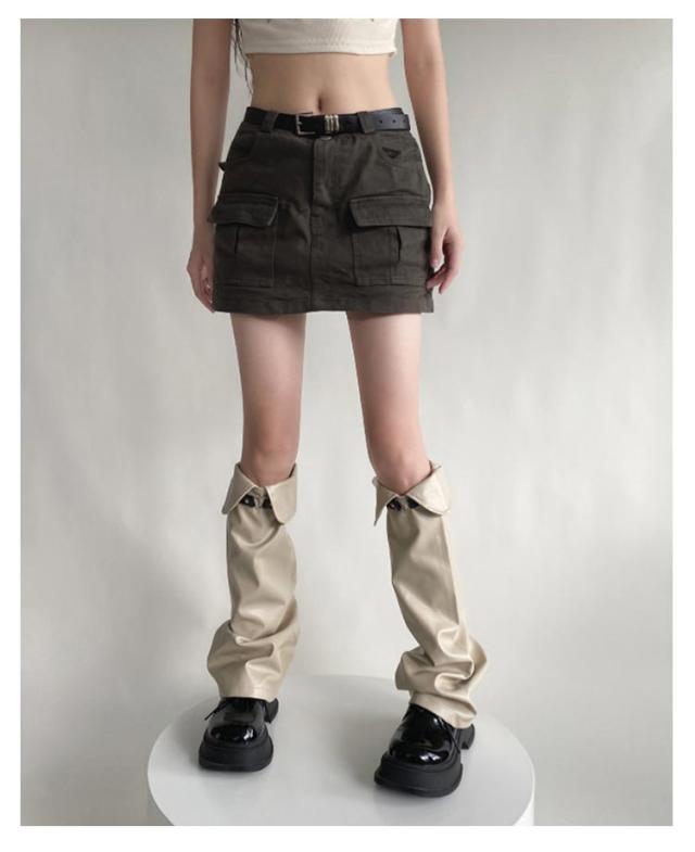 レザー調 ルーズソックス レッグウォーマー フェイクレザー レッグカバー 合皮 ダンス衣装 ヒップホップ ダンス小物 k-pop 衣装 可愛い Y2K ブラック ベージュ おしゃれ