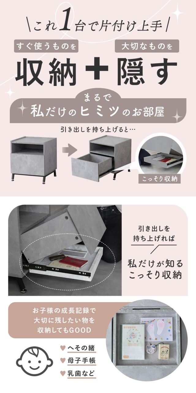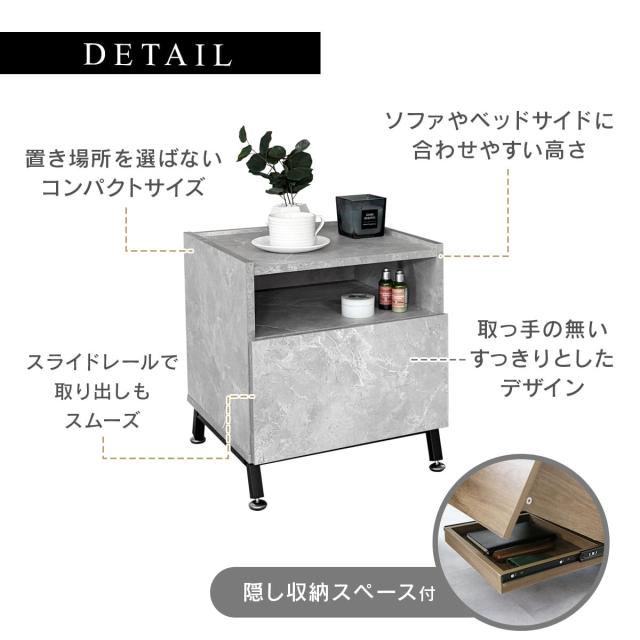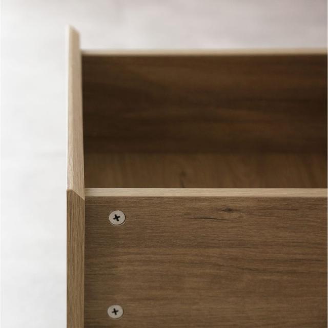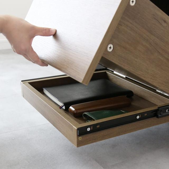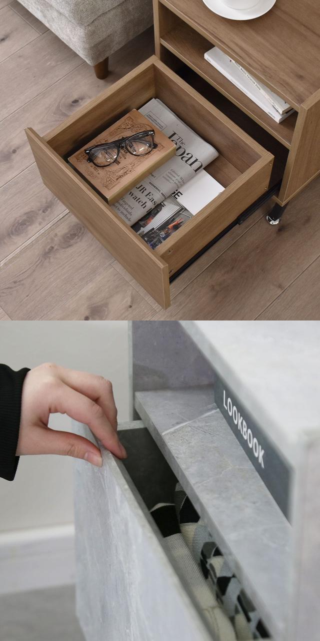 引き出しにはスライドレールを採用しており、軽い力でスムーズに開閉可能。奥までしっかり引き出せるので、収納したアイテムが取り出しやすく、整理整頓もラクになります。リモコンや文房具、ノートやメガネなど、よく使う小物をすっきり収納でき、見た目もスッキリ。ストレスフリーな使い心地を実現します。