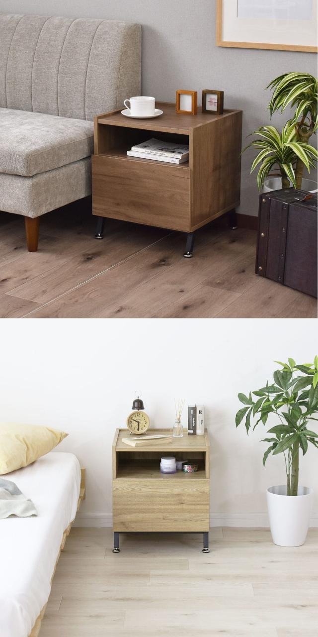 高さ設計も絶妙で、ソファやベッドの横に置いたときに手が届きやすく、使い勝手抜群。飲み物やスマホ、リモコンなどを置くのに最適で、リラックスタイムのお供として大活躍します。