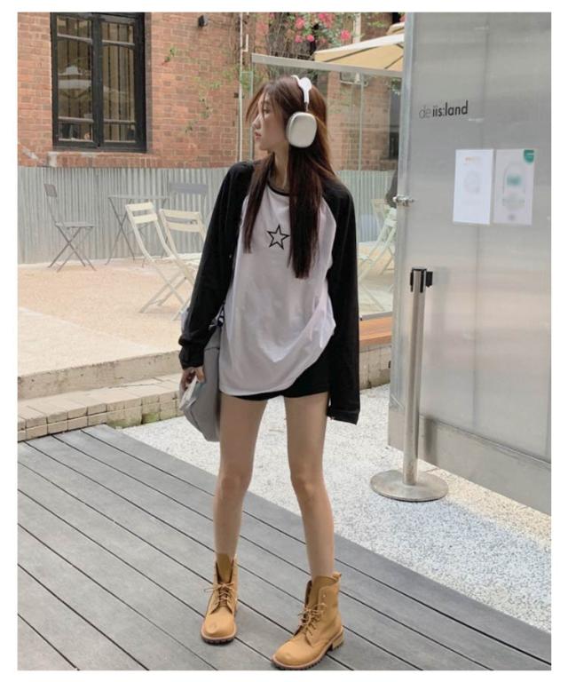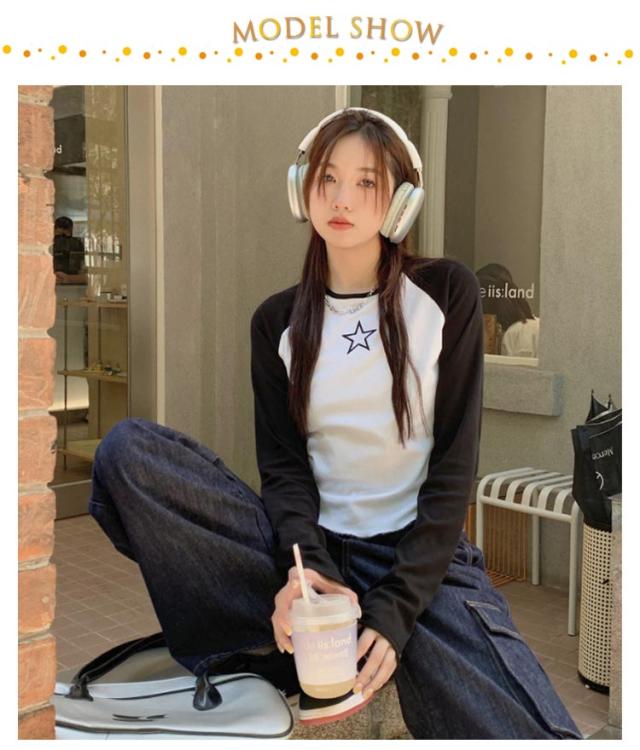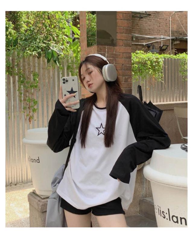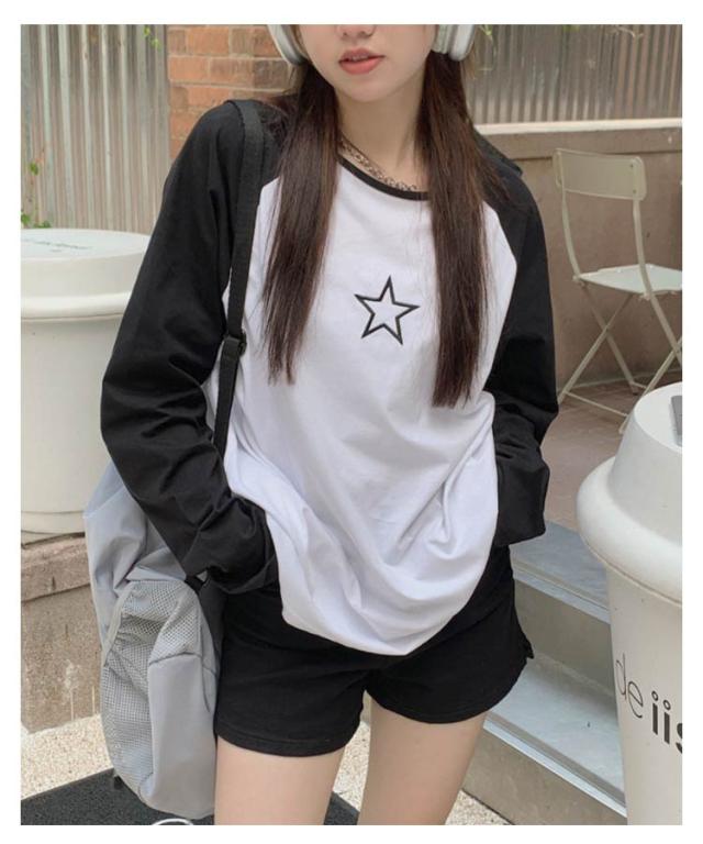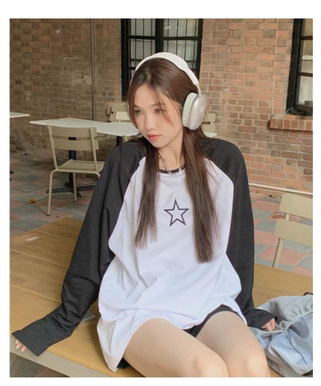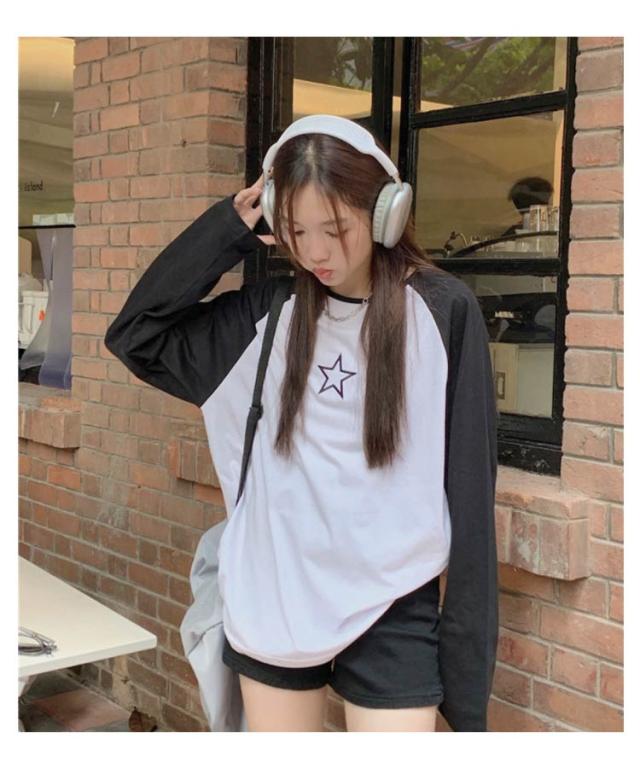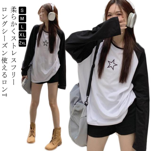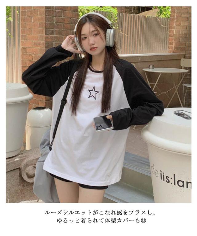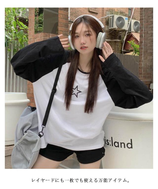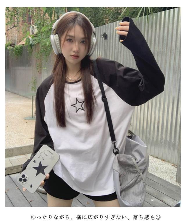 ラグランTシャツ Tシャツ ラグラン トップス 長袖 ロンT ファッション レディース ゆったり 大きいサイズ 体型カバー カジュアル おしゃれ 星柄 かわいい ラウンドネック 長袖tシャツ インナー 重ね着 可愛い 送料無料