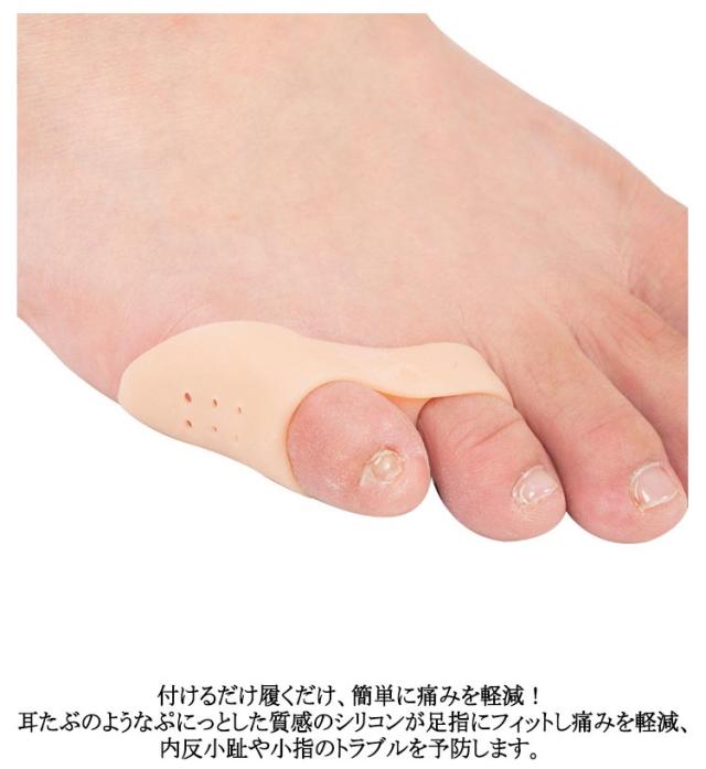 | 【内反小趾 サポーター】【6個入り】【2本固定式】 外出時に3個のサポーターを使い、帰宅後に洗ってから残りの3個を装着します。6個セットを交換して装着することが非常に便利です。 2本固定式でさまざまな足のサイズに対応し、足指をしっかり固定しているため、ずれにくいです。また、装着したままで靴下や靴を履くことができ、長時間の着用も可能です。 小指のつけ根部分の範囲を広げ、突き出た関節を包み込んで、靴擦れによる痛みを防ぎます。 付けるだけ履くだけ、簡単に痛みを軽減! 耳たぶのようなぷにっとした質感のシリコンが足指にフィットし痛みを軽減、内反小趾や小指のトラブルを予防します。 小指と薬指に装着するため外れにくく使い続けやすい形状です。 使用後は丸洗いできて衛生的に繰り返し使用可能です。 足の小指や親指、足全体の筋肉が正しく使われると、バランス感覚が向上し正しい姿勢へサポート。 身体の重心が安定することでリカバリーの向上、パフォーマンスの向上にもつながります。 | |