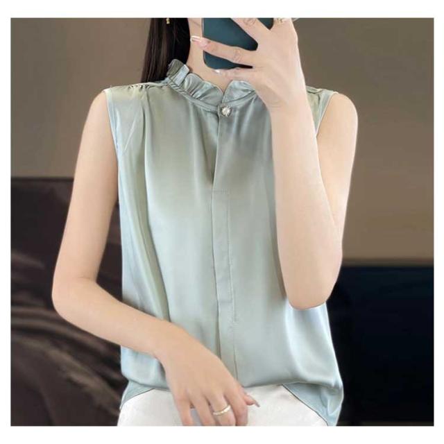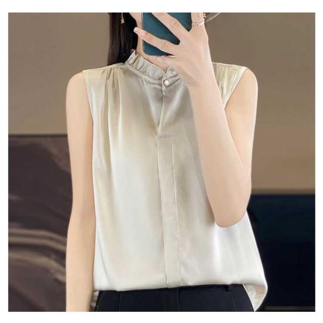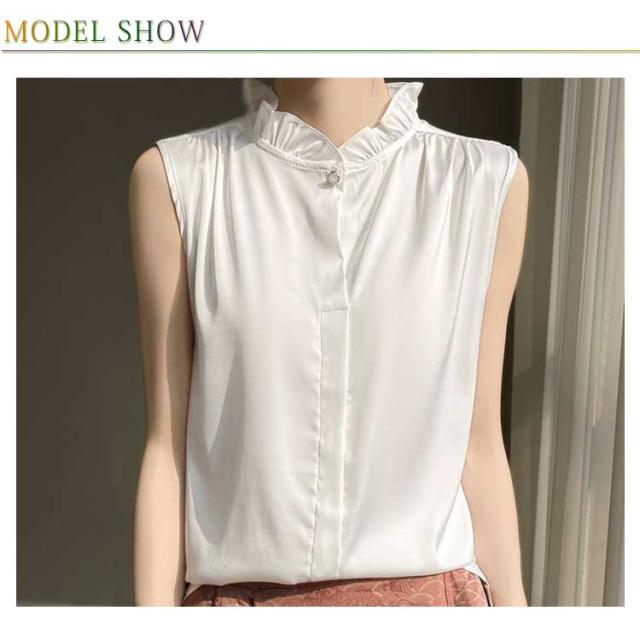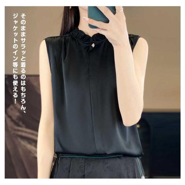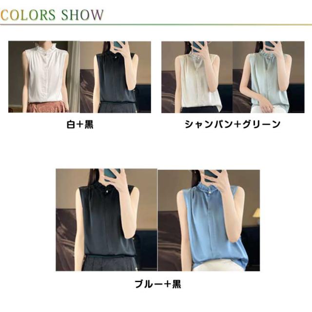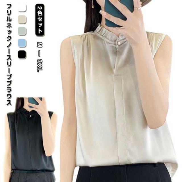 シャツブラウス ブラウス ノースリーブ 2色セット レディース トップス タンクトップ フリルネック 袖なし 立ち襟 スタンドカラー 通勤 ビジネス オフィス カジュアル 春 夏