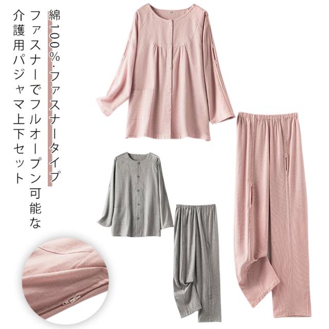 綿100% フルオープン 介護用パジャマ 上下セット 男性 女性 長袖 パジャマ 介護用 服 ファスナー 両開き 全開 レディース メンズ 入院着 介護着 高齢者 お年寄り 老人 介護 お着替 寝たきり おむつ交換 夏 秋 春 入院 術後 寝間着 入院 通院 診察 リハビリ 【送無】