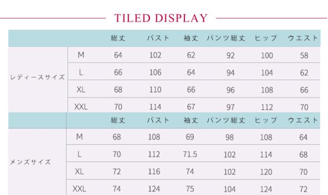 | サイズ | M(上下セット) L(上下セット) XL(上下セット) 2XL(上下セット) |